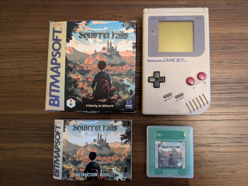 I was able to put together a game that I had first started to plan on paper, it was called Squirrel Falls where you play as a parcel courier in a woodland town, but as you deliver packages, you uncover dark secrets that turn a cosy exploration game into a fight for survival. I used two pieces of software to help me develop the game. The first was GB Studio, a game engine that allows you to develop ROMs for Game Boy cartridges and emulators. The second peice of software I used was called Tiled and this was to help produce all the in-game graphics whilst working with the handheld’s limitations.